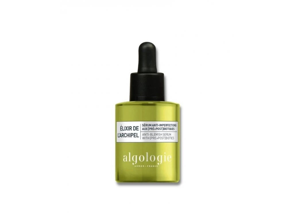 Élixir de l'Archipel je lehký fluid s nemastnou a svěží texturou. Účinek komplexu ALGO 4® je zde v kombinaci s dalšími aktivními látkami. Mořská prebiotika a postbiotika pomáhají zajistit rovnováhu pokožky, redukují nadměrnou tvorbu mazu a stahují póry. Komplex [zinek a mořské oligosacharidy] působí proti bakteriálním infekcím, zabraňuje rozšiřování nedokonalostí a tím napomáhá k udržování čisté pokožky. Pleť získává sjednocený vzhled a nedokonalosti jsou redukovány.